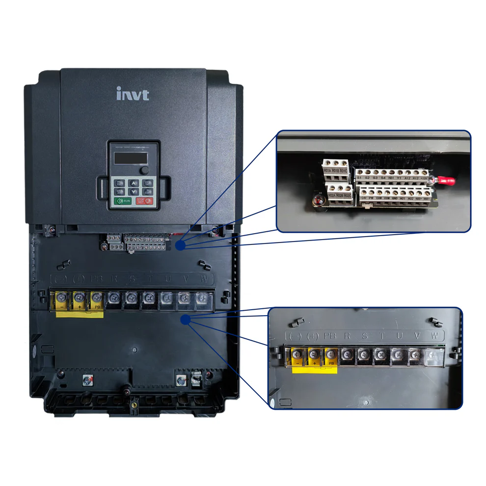 La serie GD20-LA es un variador de frecuencia (VFD) trifásico de microtipo, específicamente diseñado para motores trifásicos de 380 VAC, de alto rendimiento y orientado al mercado de baja potencia. Utiliza un algoritmo de control vectorial líder internacional, ofreciendo excelentes prestaciones de control de velocidad y torque. La serie GD20-LA permite instalación en pared o en carril DIN, gracias a su diseño compacto y eficiente.